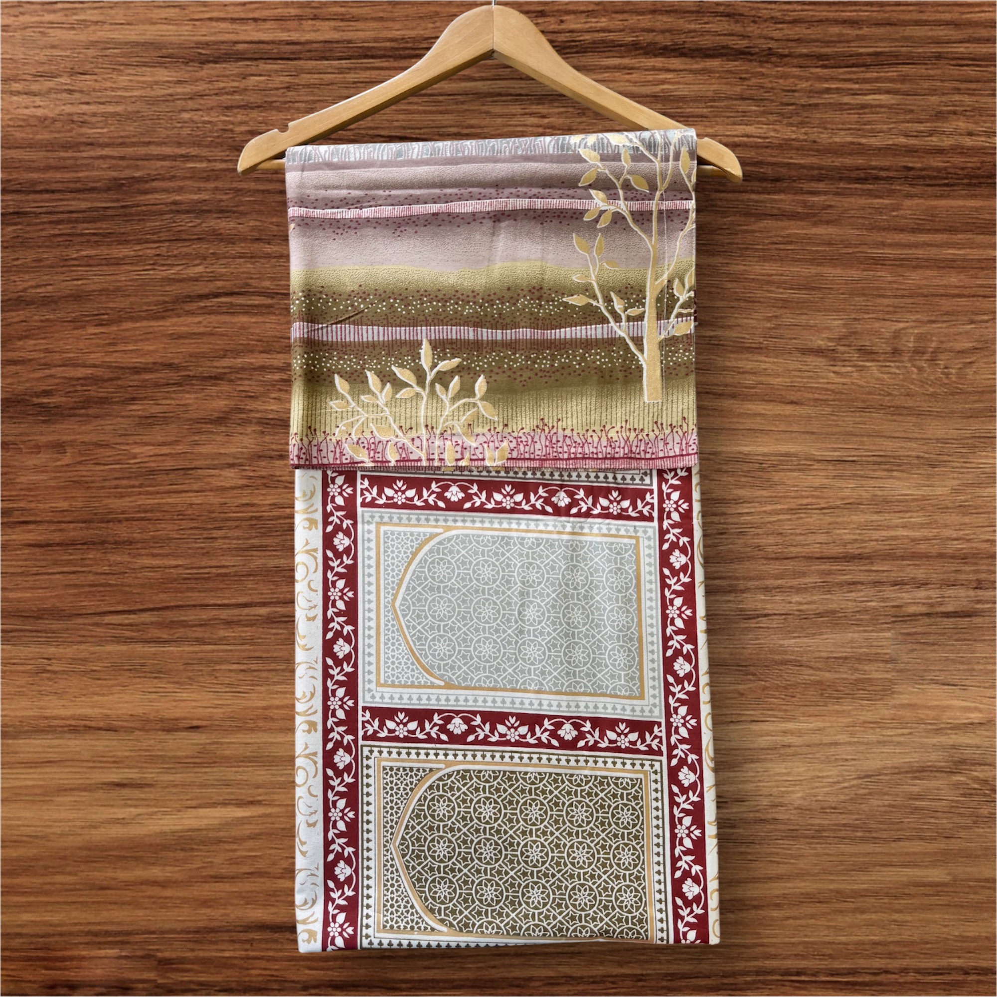 Transform your bedroom into a royal sanctuary with this exquisite double bedsheet set featuring a stunning architectural and floral design. The luxurious pattern combines elegant red hues with sophisticated gold accents, creating a perfect blend of traditional motifs and contemporary style. The spacious 108×108 inch (275×275 cm) flat sheet provides ample coverage for your bed, while the matching pillow cases, measuring 45×70 cm, complete the ensemble beautifully. The intricate design showcases delicate architectural elements in soft mint green, adorned with red floral accents and ornate borders featuring heart motifs and classical details. The premium fabric displays a meticulously crafted print pattern with subtle cream backgrounds and detailed botanical elements, making it an ideal choice for both modern and classical interior décor schemes. Perfect for master bedrooms or guest rooms, this bedding set adds a touch of sophistication while ensuring comfortable rest. The coordinated design elements create a cohesive look that elevates your bedroom’s aesthetic appeal.
