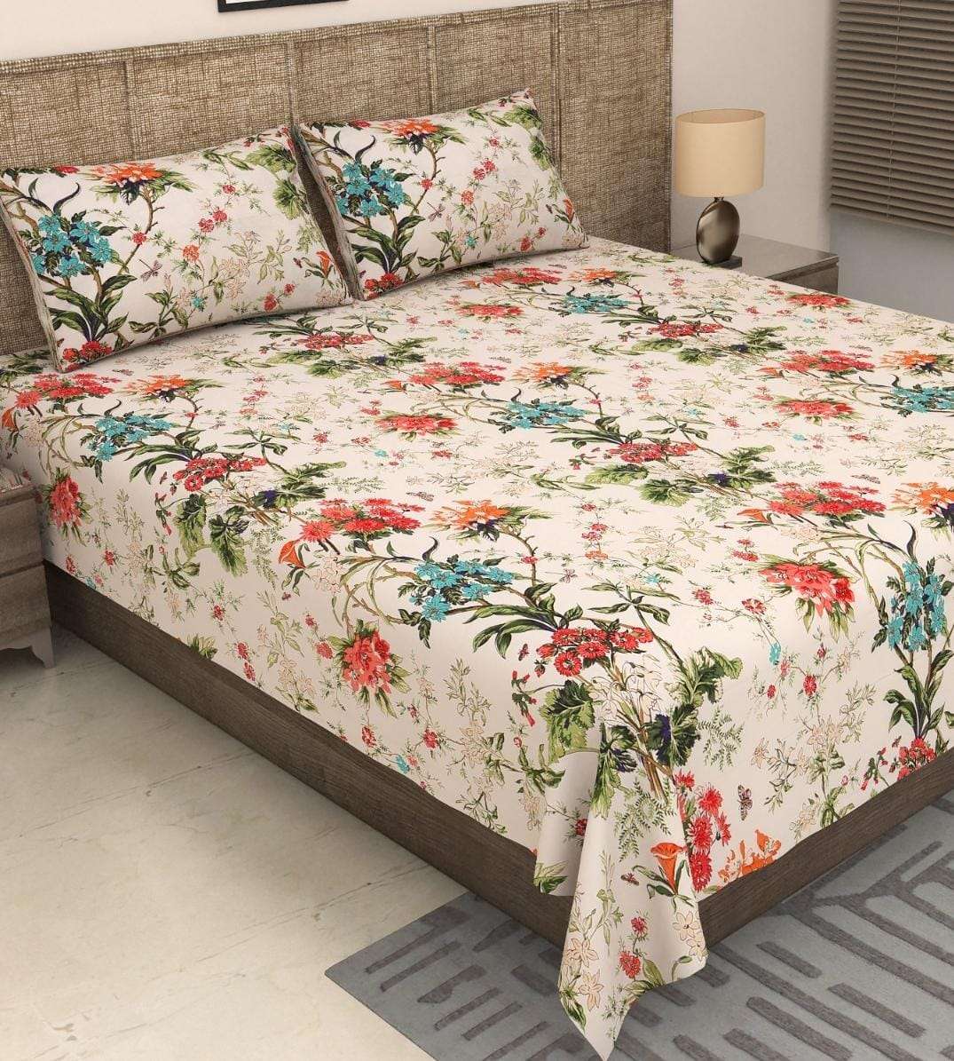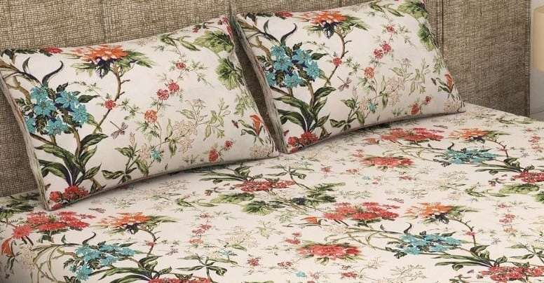 Pure Cotton Bedsheet Set, White with Multicolour Garden Print, Super King Size 275×275 cm, 3 PiecesAvailability: In stock